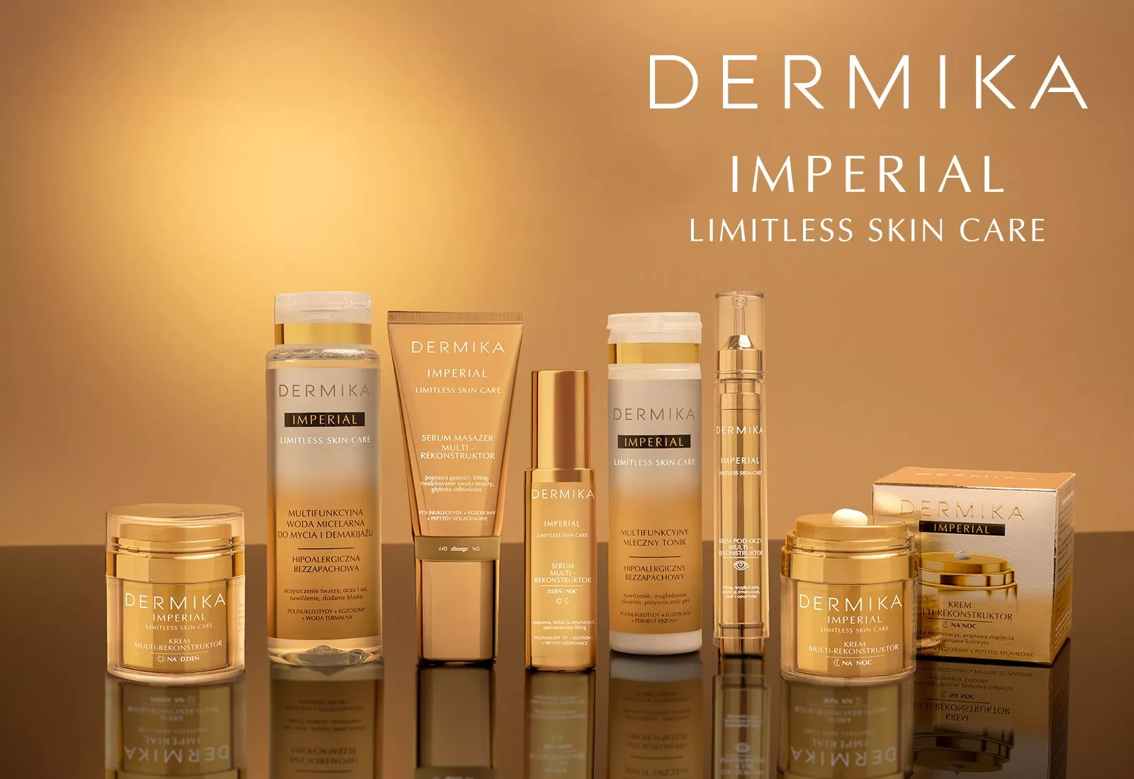 Seria Dermika Imperial to zaawansowana linia przeciwstarzeniowa przeznaczona głównie do skóry dojrzałej, suchej i odwodnionej, wymagającej regeneracji oraz poprawy jędrności. Zawiera nowoczesne kompleksy peptydowe, polinukleotydy oraz egzosomy, które wspierają odnowę komórkową, wzmacniają barierę ochronną i ograniczają utratę wilgoci. Składniki antyoksydacyjne pomagają neutralizować wolne rodniki i spowalniać procesy starzenia. Regularne stosowanie wygładza zmarszczki, poprawia elastyczność i gęstość skóry oraz wyrównuje koloryt. To propozycja dla osób poszukujących skutecznej, luksusowej pielęgnacji z widocznymi efektami.
