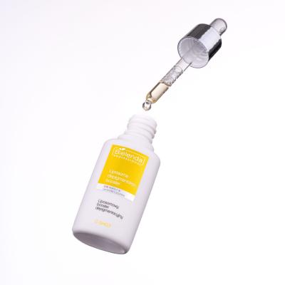Liposomowy booster depigmentacyjny działa rozjaśniająco i rewitalizująco dla skóry z oznakami fotostarzenia, borykającej się z nierównomiernym kolorytem i utratą jędrności.