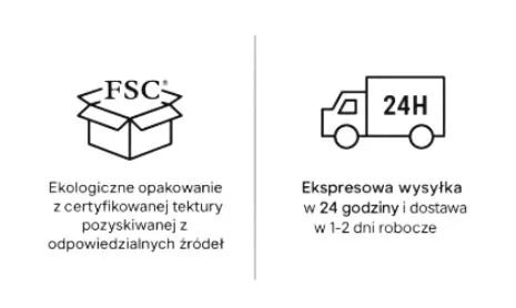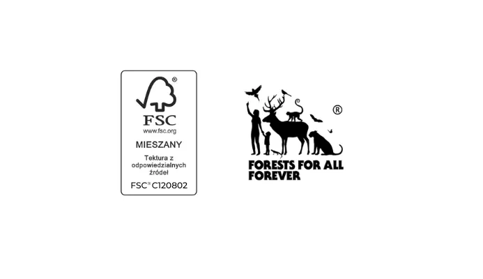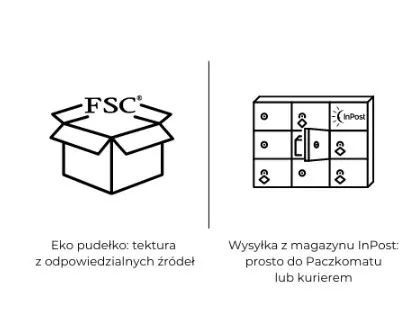 W trosce o środowisko, w ramach dostawy przez Paczkomaty InPost, oferujemy wyłącznie paczki posiadające certyfikat FSC. Standard FSC opiera się na kontrolowanym łańcuchu dostaw, od momentu pozyskania drewna z certyfikowanych lasów, poprzez wytworzenie oraz przetworzenie tektury w gotowy produkt i wysyłkę do Klienta.
