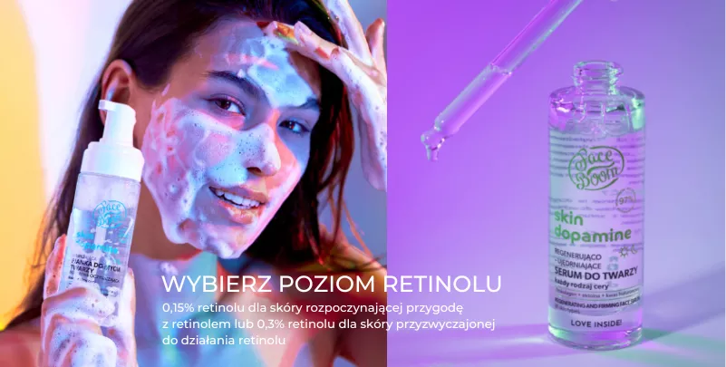 Jestem SKIN DOPAMINE i dzięki mnie z łatwością wprowadzisz retinol do pielęgnacji, tak abyś mogła cieszyć się spektakularnymi efektami jego działania. Pomogę ci zbudować tolerancję na retinol i przeprowadzę przez poszczególne etapy kuracji, z uwzględnieniem wszystkich istotnych zaleceń - wzmożonego nawilżania, regeneracji oraz wysokiej ochrony przeciwsłonecznej.