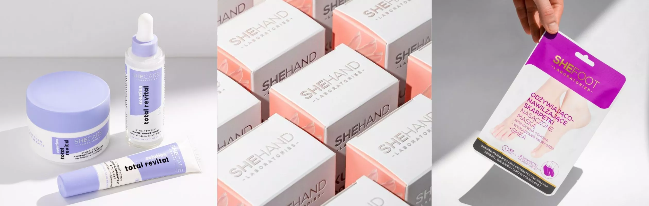 SHEHAND, SHEFOOT i SHECARE to marki specjalistyczne, stworzone w odpowiedzi na wyjątkowe potrzeby skóry dłoni i stóp, ale także problematycznej skóry twarzy i ciała. To DERMOKOSMETYKI tworzone z dbałością o jakość i bezpieczeństwo stosowania, bliskie produktom aptecznym. Większość preparatów ma wegańskie, krótkie, przyjazne dla skóry składy, nieobciążone zawartością sztucznych kompozycji zapachowych, barwników, parabenów, PEG, silikonów oraz substancji alergizujących. Produkty przebadane pod kątem stosowania na skórze wrażliwej oraz u diabetyków.
