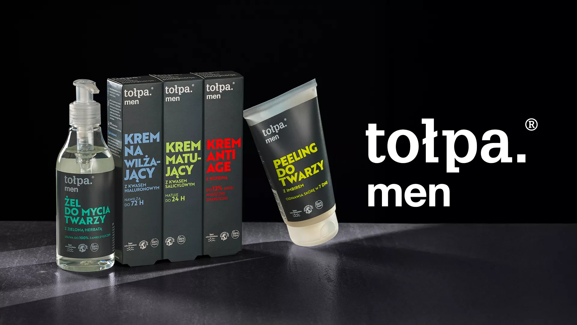 Tołpa men to linia kosmetyków stworzona specjalnie dla mężczyzn, łącząca skuteczność z prostotą pielęgnacji. Kosmetyki z dodatkiem torfu tołpa.® zapewniają oczyszczenie, nawilżenie i ochronę skóry, odpowiadając na jej codzienne potrzeby. W serii znajdziesz żele do mycia twarzy, kremy, balsamy i produkty do golenia, które łagodzą podrażnienia i wzmacniają naturalną barierę skóry. To kompleksowa pielęgnacja dla mężczyzn, którzy cenią zdrową, zadbaną skórę bez zbędnych komplikacji.