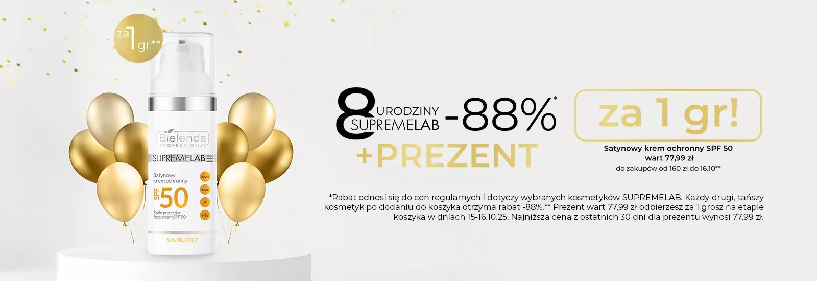 🎂 8 urodziny SupremeLab — Satynowy krem SPF 50 wart 77,99 zł za 1 grosz! Do zakupów od 160 pln + Rabaty -88% na co drugi SUPREMELAB