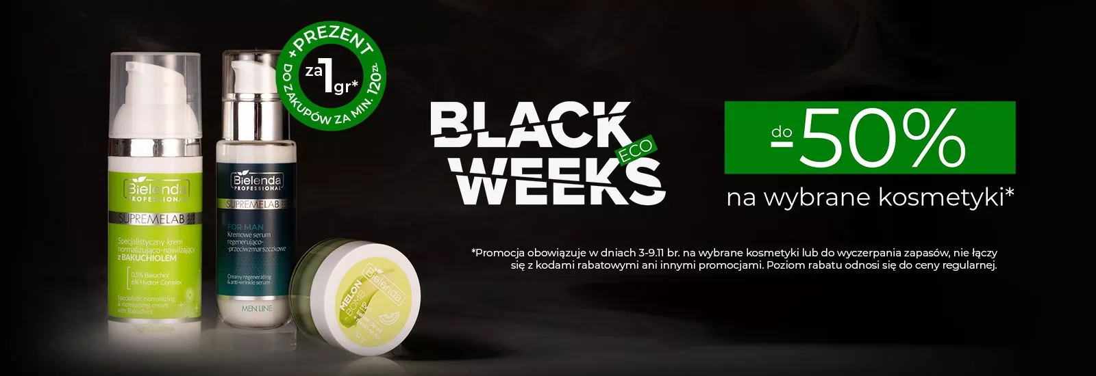 W ramach Eko Black Weeks na Bielenda.com zyskujesz więcej niż tylko kosmetyki w świetnych cenach – co kilka dni czeka na Ciebie nowy prezent za 1 grosz.