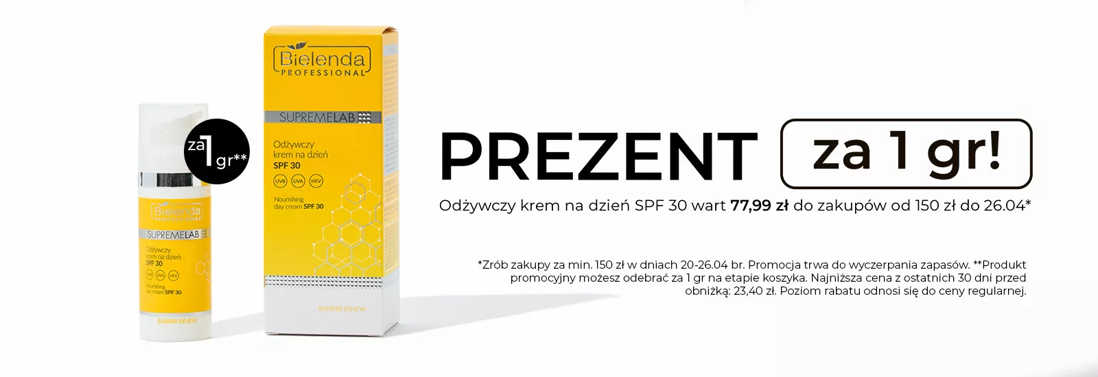 Na Bielenda.com oszczędzanie to stały element zakupów, a nie jednorazowa akcja. Co tydzień przygotowujemy DUŻY PREZENT, który możesz dodać do zamówienia za 1 grosz. Aktualna oferta prezentowa jest zawsze komunikowana na stronie głównej, dzięki czemu łatwo sprawdzisz, z jakiego benefitu możesz skorzystać w danym tygodniu.